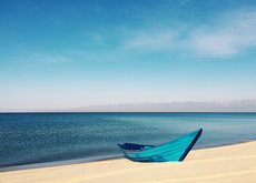 Esta foto en la playa está compuesta por líneas horizontales, las cuales representan calma, este mensaje de calma también está reforzado por el uso de colores apagados. Sus formas rectangulares representan un paisaje uniforme.